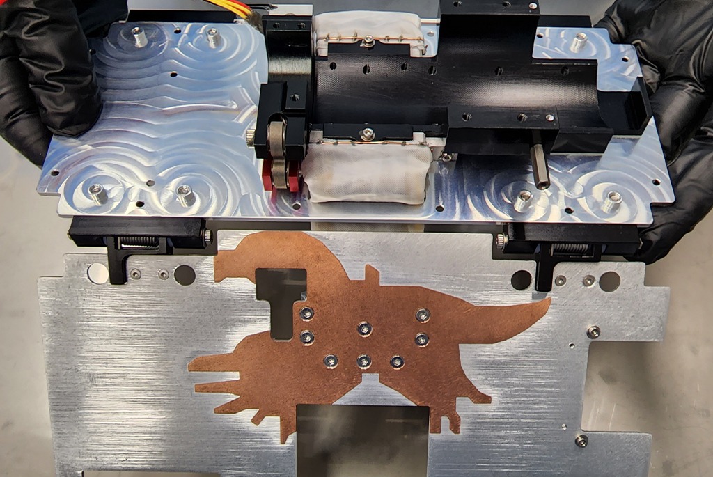 A bespoke bi-metallic radiator design, cold-sprayed in pure copper and coated in mirror tape on one side, maximises the thermal efficiency of the system. The unique thermal design utilises an optimised ‘bird-shaped’ spray pattern generated by a computer algorithm. This allows the nanosatellite to efficiently reject heat for instruments with a substantially higher mass to thermal performance ratio.